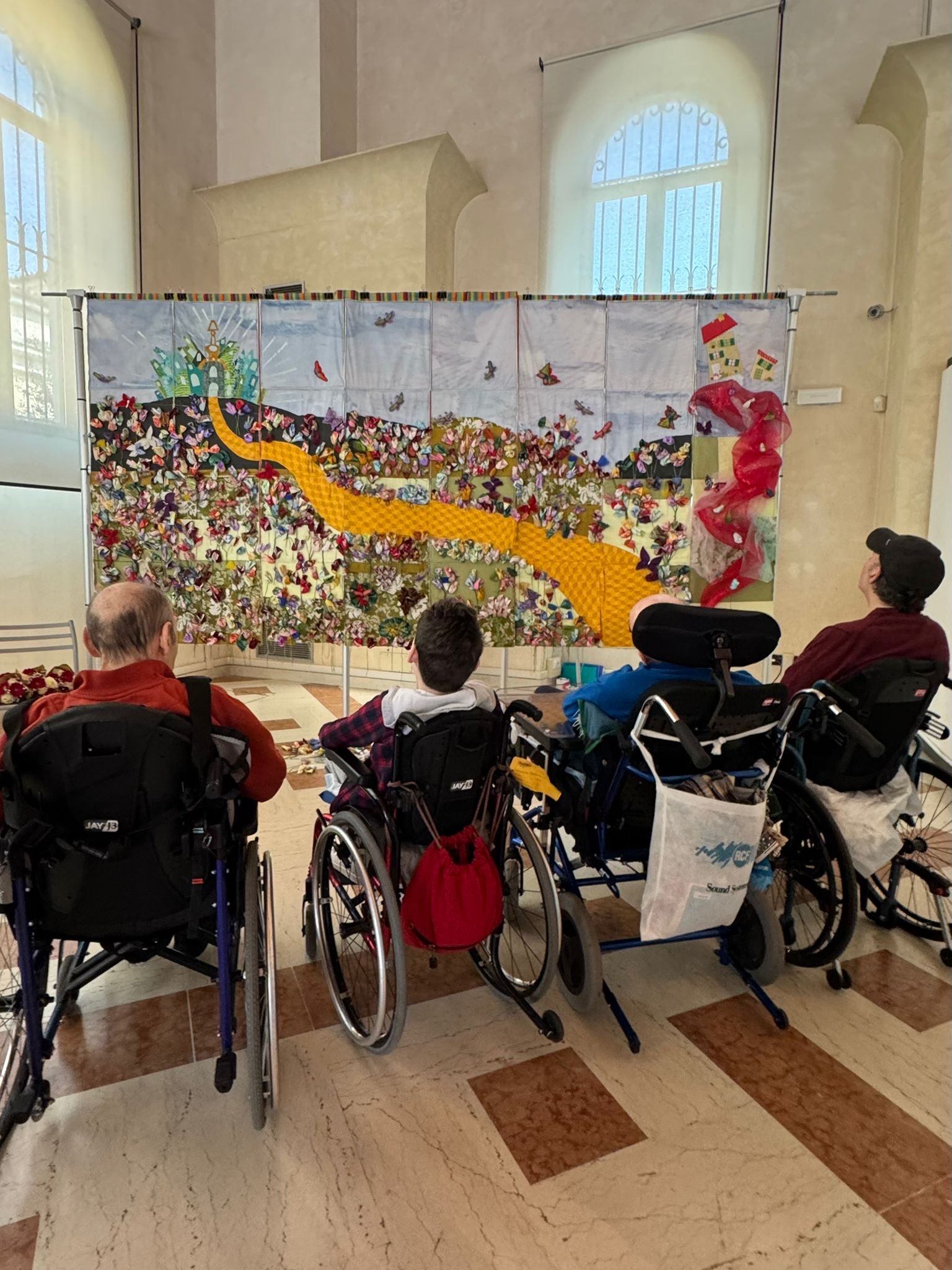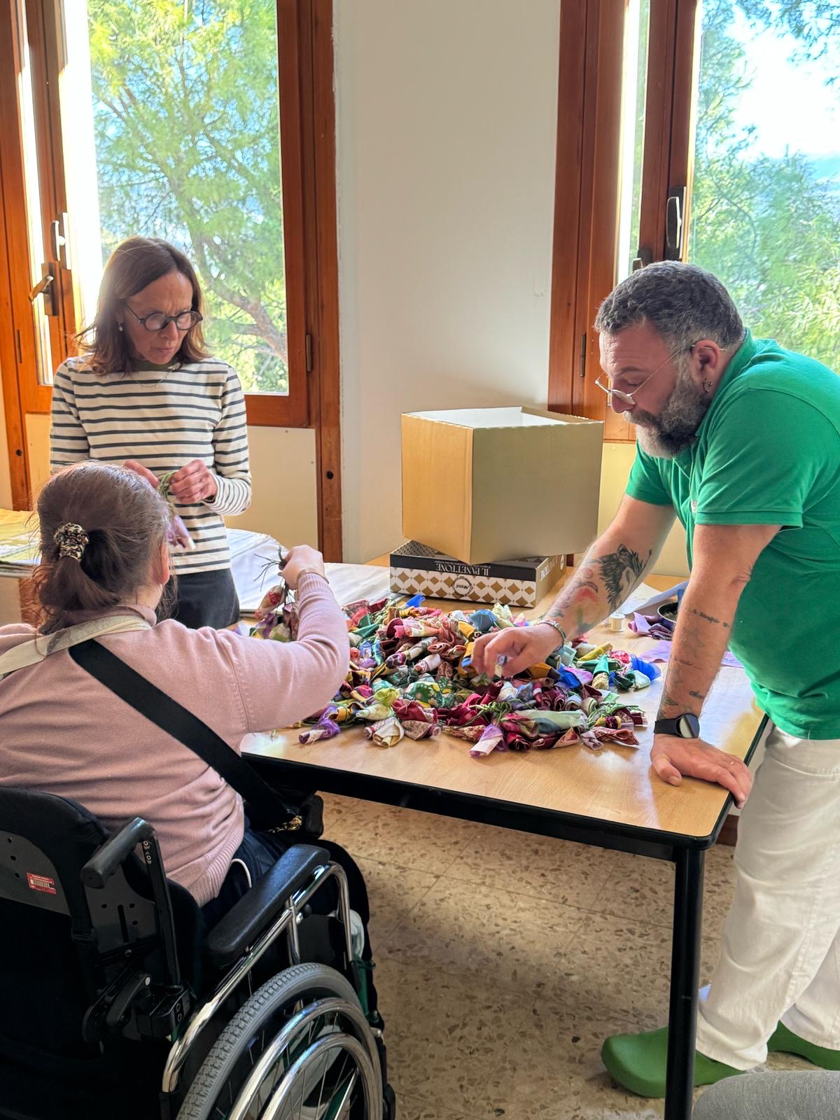 Dal mese di ottobre 2024 a maggio 2025 sono stati organizzati dei laboratori che hanno portato gli ospiti delle strutture a realizzare un grande telero, diventato simbolo del percorso verso l’integrazione sociale di persone adulte con disabilità attraverso la manualità, la creatività e l’apprendimento delle tecniche tessili, al fine di stimolare l’autostima, la motivazione, la dignità e l’autonomia.
